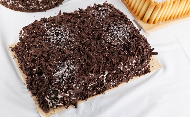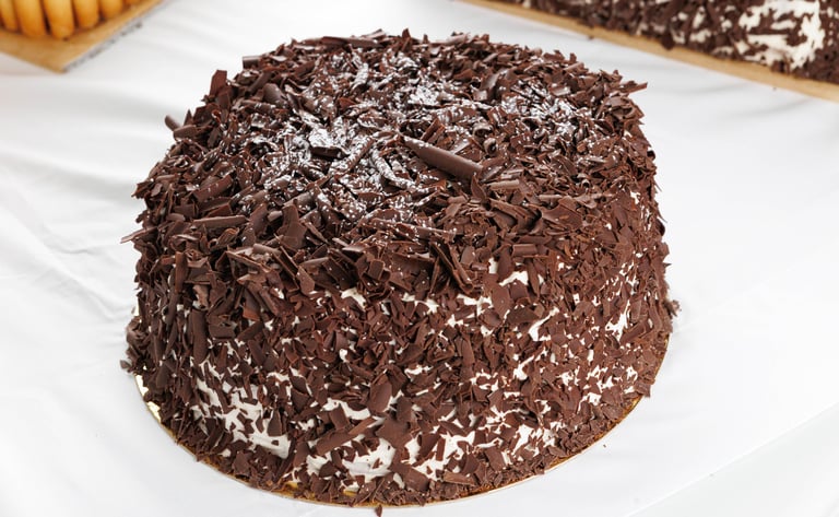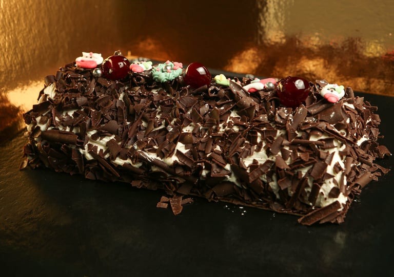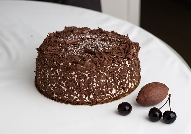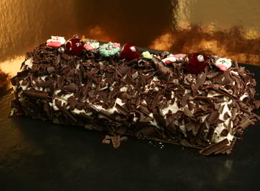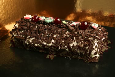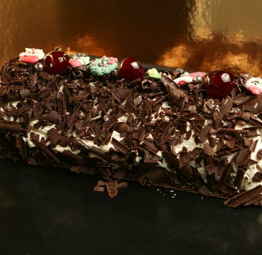 La Forêt Noire Neige Ébène mêle profondeur chocolatée, éclat fruité des cerises Amarena et légèreté fouettée… Un équilibre raffiné entre puissance et douceur.