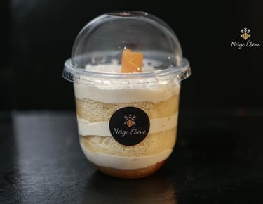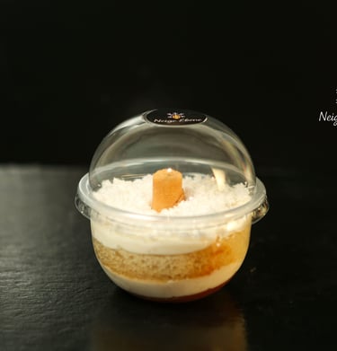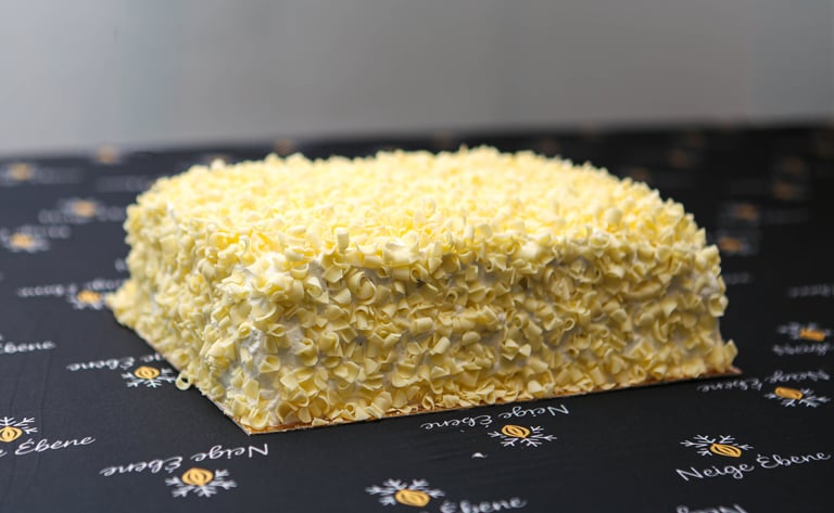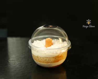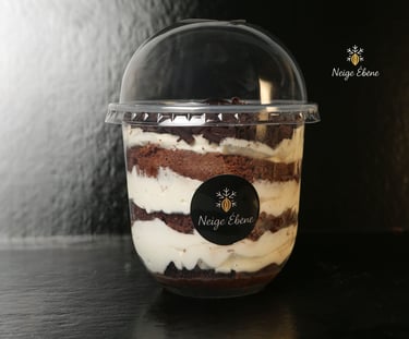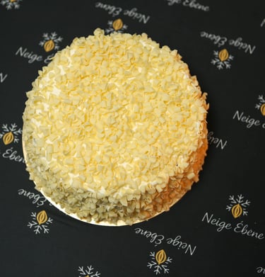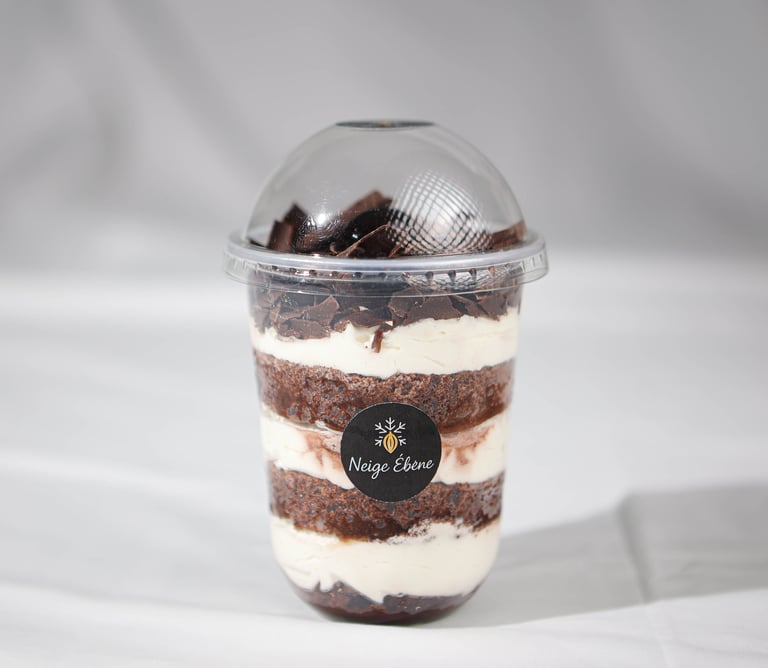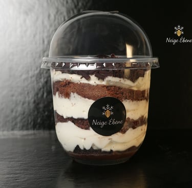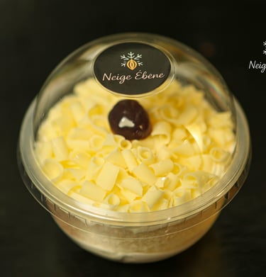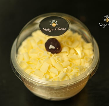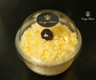 Un écrin blanc où se rencontrent moelleux, fraîcheur et fruité. La Forêt Blanche de Neige Ébène évoque la pureté d’un paysage enneigé, où la douceur règne et où chaque saveur glisse comme un flocon sur la langue.